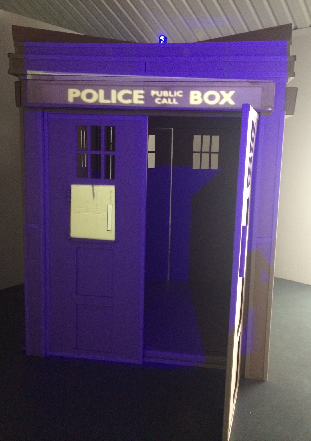 The Boscombe CARDis. A full sized reproduction made purely from cardboard of the police box that landed on Boscombe high street in 2013.